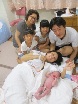 2人のお姉ちゃん、パパ、おばあちゃんに囲まれて、3人目の可愛らしい女の子が元気に産まれました。