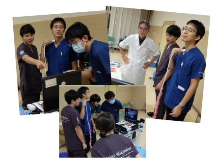 自らの首にエコーを当てて血管を見せてくれました♪