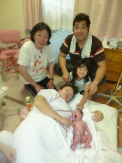 痛みが強くなってきてからは順調な経過で、パパ、おねえちゃん、おばあちゃんの声援を受け、ママも赤ちゃんも頑張りましたね。