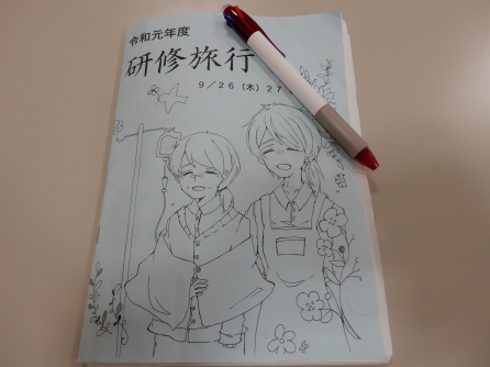 これは、研修旅行の要項で表紙は学生さんが書いたものです。