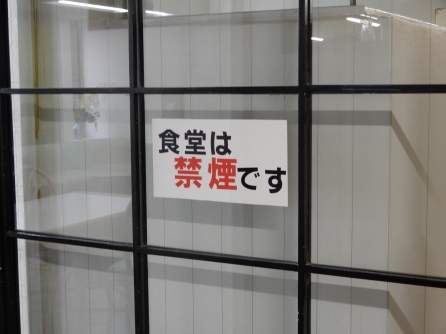 ラウンド中、何となく違和感・・・。院内全館禁煙なのにおかしな表示だと思いませんか?昔の名残でしょうね。外すように依頼していきたいと思います。