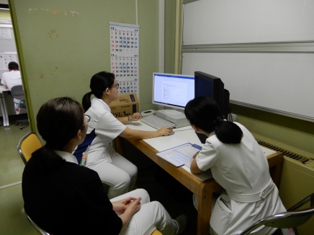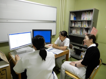 A3病棟課長係長3人。研修医の評価シート記入中です。