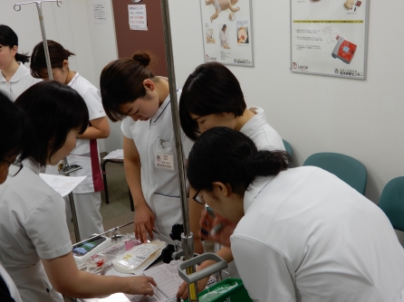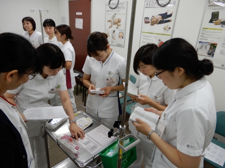 メンバー交代しながら、輸血と+αの内容を変えながら3回実施し、多重課題への対応を習得していきます。