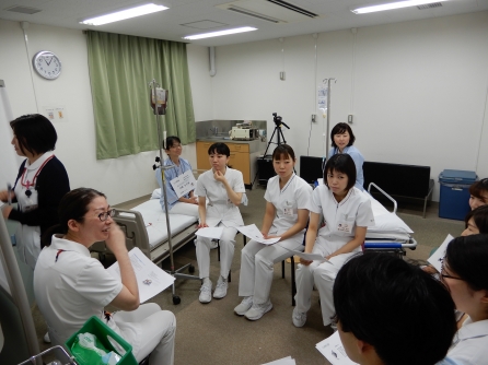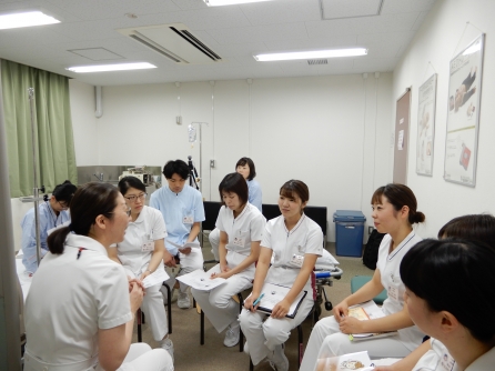 今日は、教育委員会企画のシミュレーション研修。テーマは多重課題、日常生活援助~輸血の模擬体験を含む~でした。教育委員4名と1年目看護師7名で取り組みました。