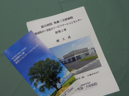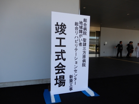 10月23日晴れの日に、聖隷三方原病院 地域障がい者総合リハビリテーションセンターの竣工式が行われました。社会福祉法人としての事業として、このセンターが地域の障がいをもち生活されている方々に広く使用されることを心から願っています。リハビリテーションだけでなく、アリーナでは障がい者スポーツができるような作りになっていますし、備品もそろえてあります。私達職員も心待ちにしていたセンターです。これから地域の方々と一緒に活用方法を考えていけたらと思います。