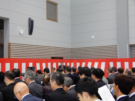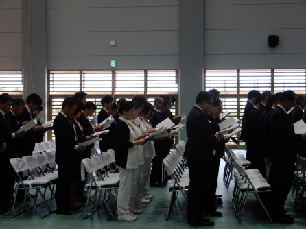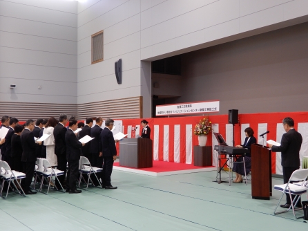竣工式はアリーナで行われました。進行は中村事務長です。