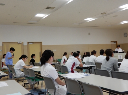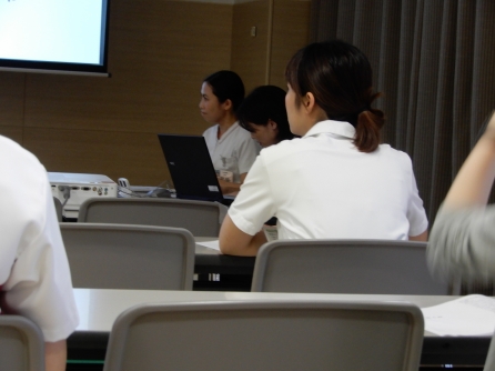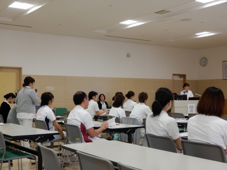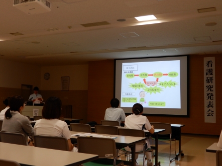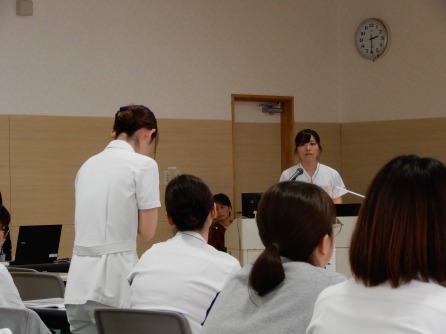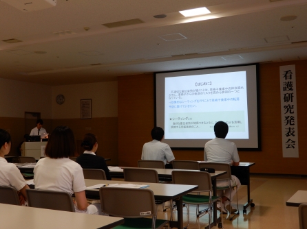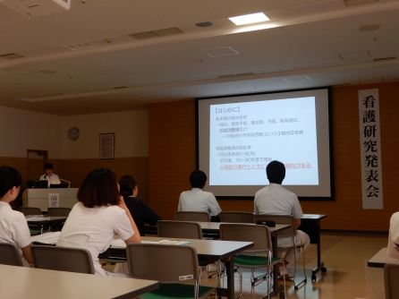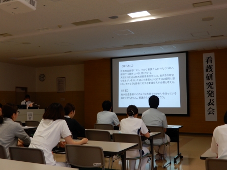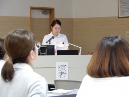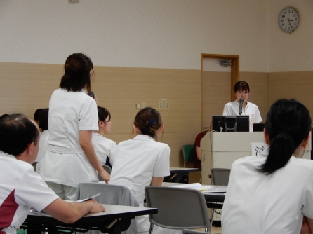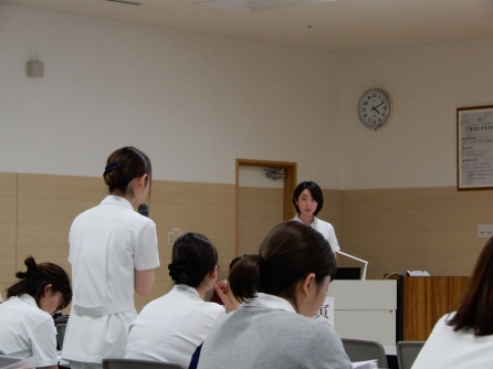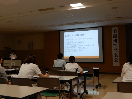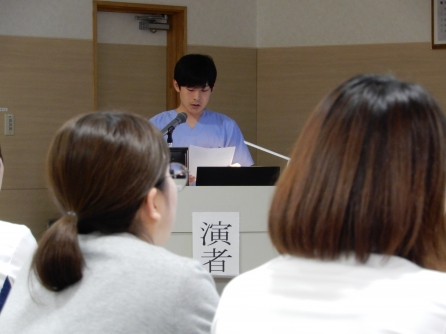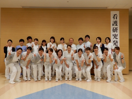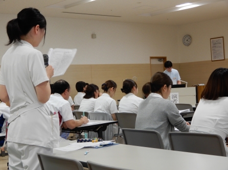 1日目終了。朝の発表前の表情とは全然変わって元気いっぱい開放感にあふれています。殆どが3年目看護師で、ベッドサイド最前線、夜勤回数も1番多いくらいの年代ではないでしょうか。24時間の看護をつなぐ頼もしい存在です。日頃の疑問、気づきから始まり文献研究としてまとめました。発表を通しお互いの学びを深め、今後の看護に必ずや活かされます。本当にお疲れ様でした!ありがとうございます。