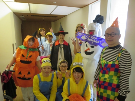 お部屋内では、お菓子を配ったり患者さんにも簡単な仮装をしてもらいみんなで記念写真を撮りました。