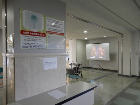 その他、1階玄関ホール近くには救急蘇生の動画と体験コーナーがあったり…