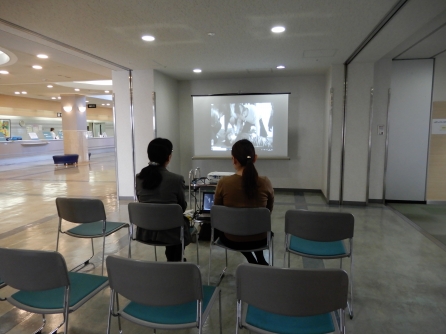こちらはMさんはじめ、3人が前に出てアニメのアフレコ?画面を見ながら台本を読む体験したところです。
