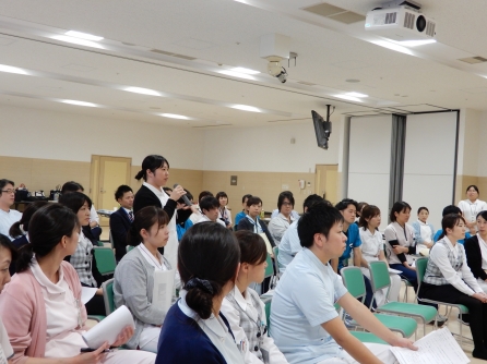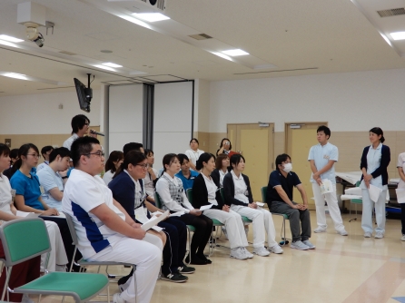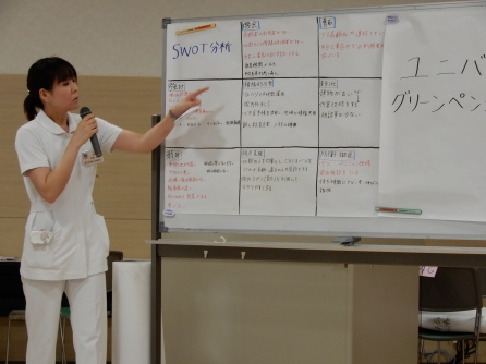中堅研修5回目は、「2025年の聖隷三方原病院」のお題で企画書を作成し、プレゼンテーションをするという内容です。利用者にとって「魅力ある施設」にするための企画書です。会場に入った時に感じたのは研修生同士の一体感!とても良い雰囲気の中で受講しているのだなと思いました。これから病院の土台となりリーダーシップを発揮するスタッフ達です。楽しみです。
