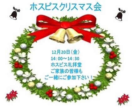 今日はホスピス科の礼拝堂内でクリスマス会が開催されました☆