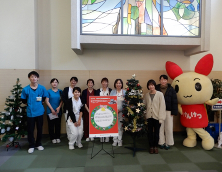 看護部ブログ12/16献血メッセージボードとツリーが飾られました