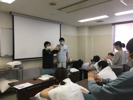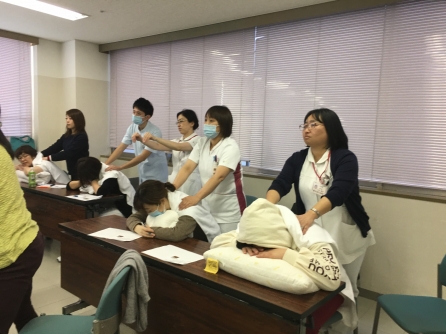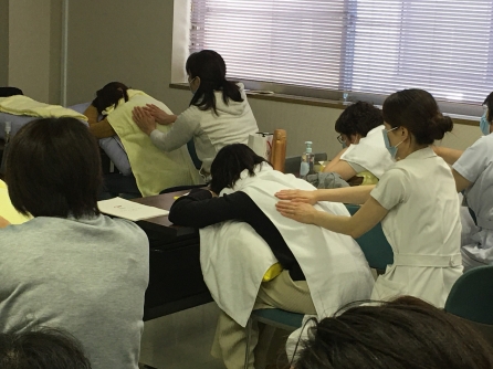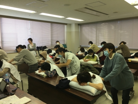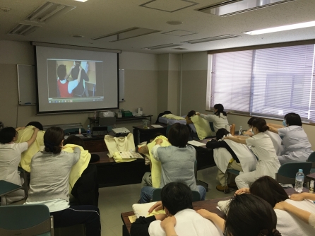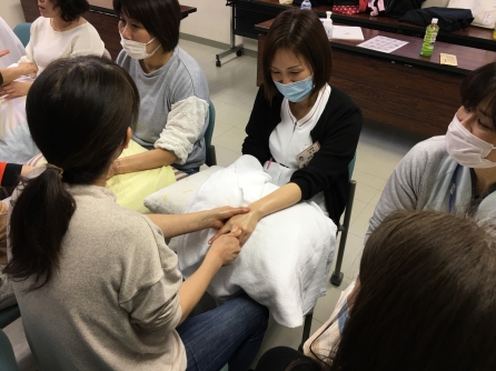 当院は5年前からタクティールケアの研修を受けたスタッフを中心に高齢者の就寝時前のケアなどに活用しています。スウェーデン発祥ので手で包み込むように触れる「タッチケア」になります。看護師、看護補助者が技術を習得しています。今年は更新の方と新たに受講する人で多数になりました。今後のケアに活かされることでしょう。