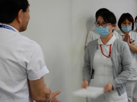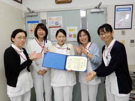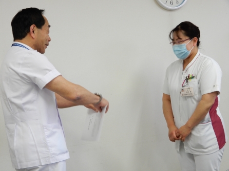 セカンドレベル5名が修了しました。3月20日に修了式を予定していましたが、中止となったため看護課長会で授与式を行いました。せっかくなので病院長から授与してもらいました。