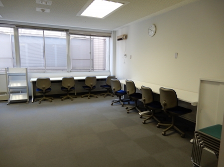eラーニングは自宅でも出来ますが、この部屋で出来るように人数分のパソコンを入れて環境を整えます。受講生同士、助け合いながら取り組んでもらえればと思います。
