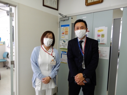 F事務次長が異動前のご挨拶に来てくれました。当院では7年間、総務課長の頃、一緒に採用活動で車で出かけ道中色々お話したなぁと思い出しました。新天地での活躍、応援しています。