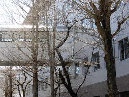病院周囲の桜は、毎年近隣で一番早く咲くのですがまだまだです。
