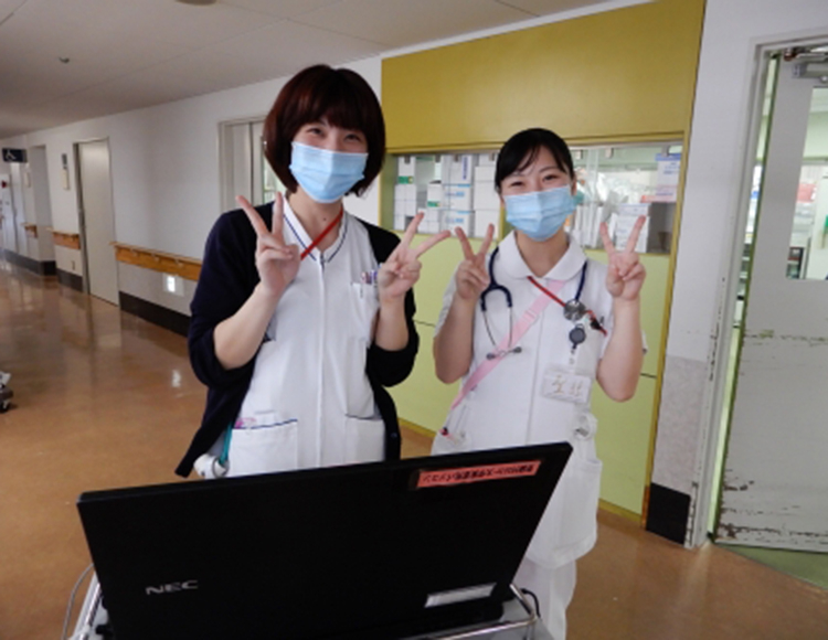 先日、Oさんに娘のSちゃんが誕生しました。おめでとうございます!!小さいですね~可愛いですね~嬉しいですね~。家ではママと妹の帰りをお兄ちゃん達が待っています。また会いに来て下さいね(^^)。 今日のラウンド。分娩見学直後の新人助産師にばったり!これから記録、振り返りのところを写真撮らせてもらいました。 外科病棟では手術前オリエンテーション準備のペアに会いました。先輩が患者さんに渡す資料と電子カルテの情報を見ながら説明していました。外科病棟、もう一人の新人看護師はストーマ室で先輩と患者さんへ指導中とか。先輩も後輩も皆元気に頑張っていますね。新型コロナ感染症対策で採用活動も色々工夫しながら取