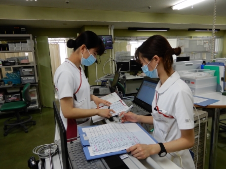 今日はA3病棟とF3病棟のペア看護師です。電子カルテ、看護行為基準など開きながら、とても丁寧に確認している姿をみました。ありがとうございます。その他、私が病棟業務していた頃一緒に働いていたスタッフ、今後施設間異動するスタッフ、ペア看護師の様子をラウンドして回る係長、勤務表作成の〆切に追われている課長、整形の診療部長など色々な方と話すことが出来ました。