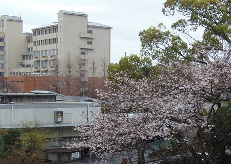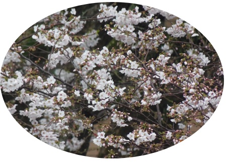 咲きかけた病院前の桜の花も開花がまた遅れそう・・・・。
