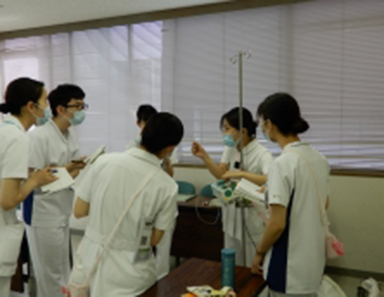 5月18日に1日かけて安全な看護実践1(静脈注射編)を行いました。座学は全員一緒に行うつもりでしたが、講師に2回ずつ行ってもらうようにしました。その後の演習も3つの部屋に分かれて・・・小グループに分かれたので委員も担当する項目を1人で行っていました。