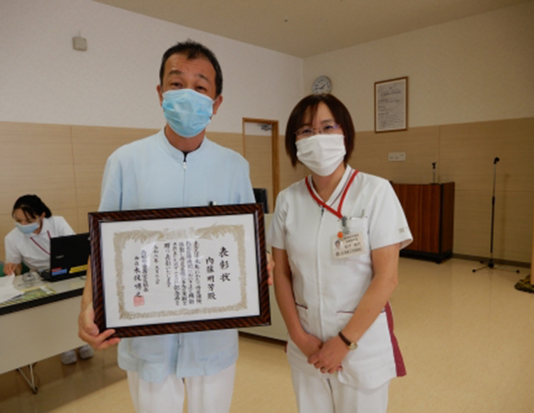 Nさんは現在F3病棟(整形外科病棟)に勤務するジェネラリスト看護師です。ここ1年の間にも数名の患者さんから私宛にNさんの看護に対するお褒めの言葉を頂いています。穏やかに丁寧に、そして看護師としての専門性が伝わる看護をしているのでしょうね。今回の表彰は別件で、労災保険指定医療機関 精励恪勤賞 というものです。Nさんが長年当院で一生懸命働いていたのが、こういう場面で評価されたことに心から嬉しく思います。おめでとうございます。