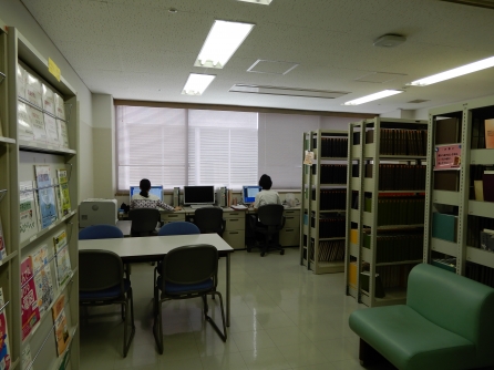 看護図書室、看護研究に取り組む3年目看護師2人が文献検索をしていました。頑張って下さいね。見えないところにパソコンに向かう感染管理の認定看護師Nさんがいました。お疲れ様です。