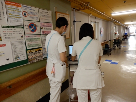 A5病棟。リリーフに来ていたHさんとA5の新人看護師です。
