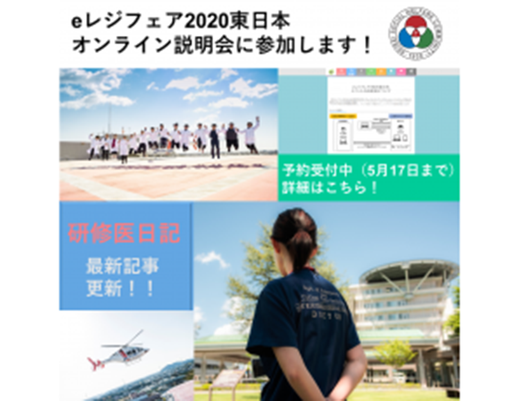 こんにちは♪ 新緑の季節となり、とても過ごしやすい季節になりましたね! さて当院は5月24日(日)のeレジフェア2020東日本のオンライン説明会に参加します。 当日は初期研修医の先生方が病院の説明をします。 研修プログラムのことから病院の雰囲気、研修生活まで幅広く質問にお答えします☆ オンライン説明会への参加には事前登録が必要となります。 登録はこちら 皆さんの参加をお待ちしております!聖隷三方原病院臨床研修センターでは、上記のような医学生・研修医の皆さんにとって重要な情報をラインで発信しています! この機会に登録してくださいね!