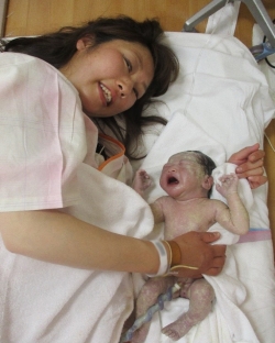 ママは大ベテラン妊婦さんで、お兄ちゃんやお姉ちゃん達も安産だったし、いつスイッチが入るのかこちらもドキドキでした(^^;) ママのいきみがとても上手で、今までで1番大きな赤ちゃんだったけど今回もとても安産でしたね(^_^)v