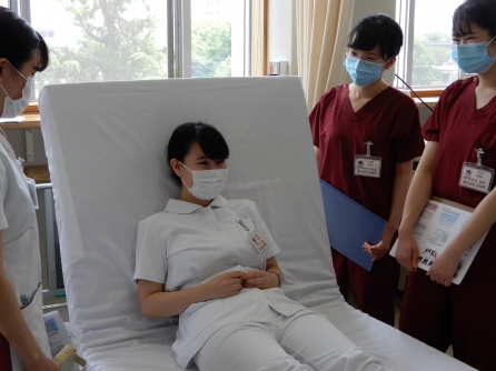 新人看護師・助産師対象の研修「安全な看護実践1」がありました。食事援助、吸引、栄養チューブ挿入、褥瘡ケア、おむつの装着、ポジショニングなど盛りだくさんになります。ベッドを使用しての演習はクリストファー大学の基礎看護実習室をお借りして実施しました。本当に恵まれた環境に感謝いたします。今日は1時間程度しか見にいけなかったので、おむつの装着方法とポジショニングの様子をお届けします。1年生と教育委員、教育担当係長での研修、1年生同士笑顔溢れる研修でした。