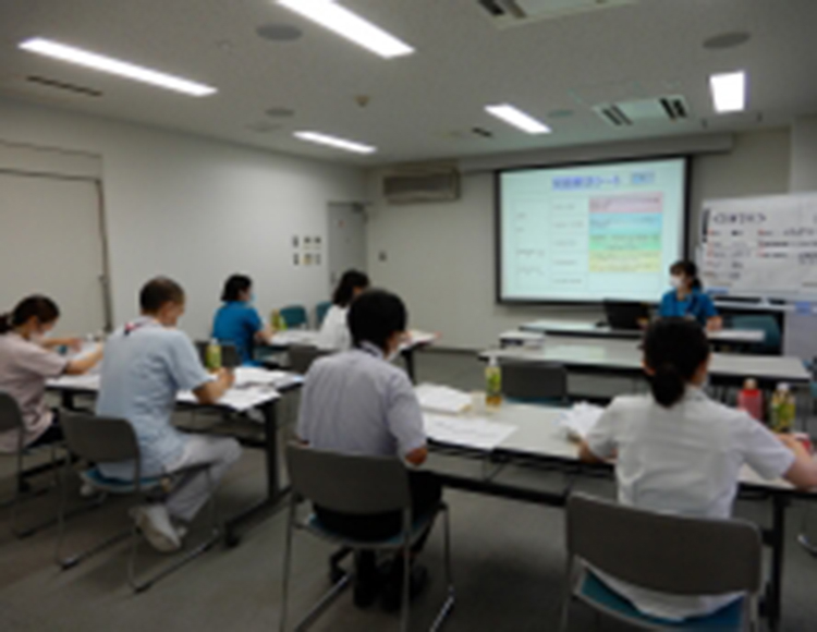 2020年度のファーストレベルが開講して1週間が経過しました。10日は坂本すが先生で、東京からのオンライン研修となり設営も緊張感がありましたが、医療情報課の全面協力によりスムーズに行うことが出来ました。適宜の質問や会場を見ての判断が難しいのでどうなる事かと心配していましたが、夕方の受講生の表情やコメントからも充実した1日だったことが伺えました。 同日の午後は、特定行為研修の演習に西山病院の看護師をお招きして手順書の作成などを学びました。前回の演習で自分達でも作成に取り組んでいますので、多数の質問・意見が出たようです。