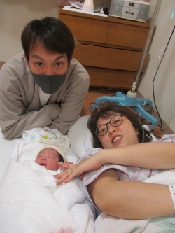 夜中のお産だったにも関わらず、出産後はパパも駆けつけてくれて短時間だったけどパパママ赤ちゃんで過ごす時間も出来ました。