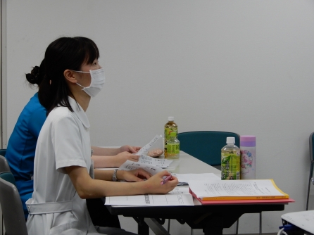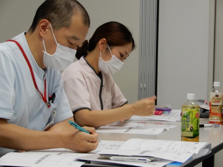 同日の午後は、特定行為研修の演習に西山病院の看護師をお招きして手順書の作成などを学びました。前回の演習で自分達でも作成に取り組んでいますので、多数の質問・意見が出たようです。