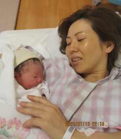 今日は健診日。もう今日こそ生んで帰りたいというママの願いが通じたのか夕方からどんどん陣痛が強くなり予定日丁度にかわいい女の子が元気にうまれましたね。