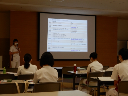 江上次長には看護サービスの質管理・安全管理のところで講師をしてもらいました。マスク講義は本当に大変!!サードレベル修了者の次長さん達には皆活躍してもらっています。