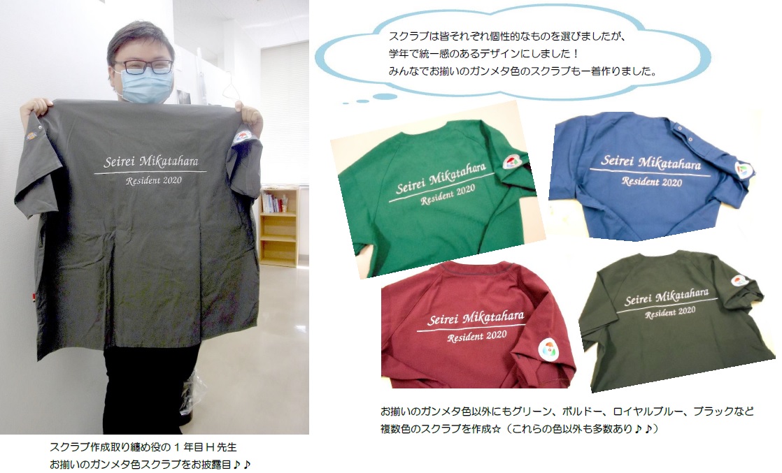 1年目H先生がスクラブの色やデザインなどについて意見を纏めて注文してくれました。