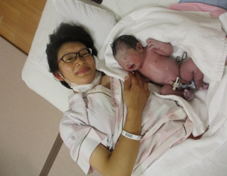始めは陣痛がなかなか強くならずに頑張って歩いてくれていましたね。 促進を始めてからはスムーズに進み、産声のとても元気な男の子を出産されました!呼吸法もとても落ち着いていましたね。ママが赤ちゃんの臍の緒を切ってくれ独り立ちとなりました! ご家族が増え、とても賑やかになる事でしょう★とても楽しみですね! 2人の育児は大変なこともありますが、ゆっくり楽しんで下さいね。 ご出産おめでとうございます。