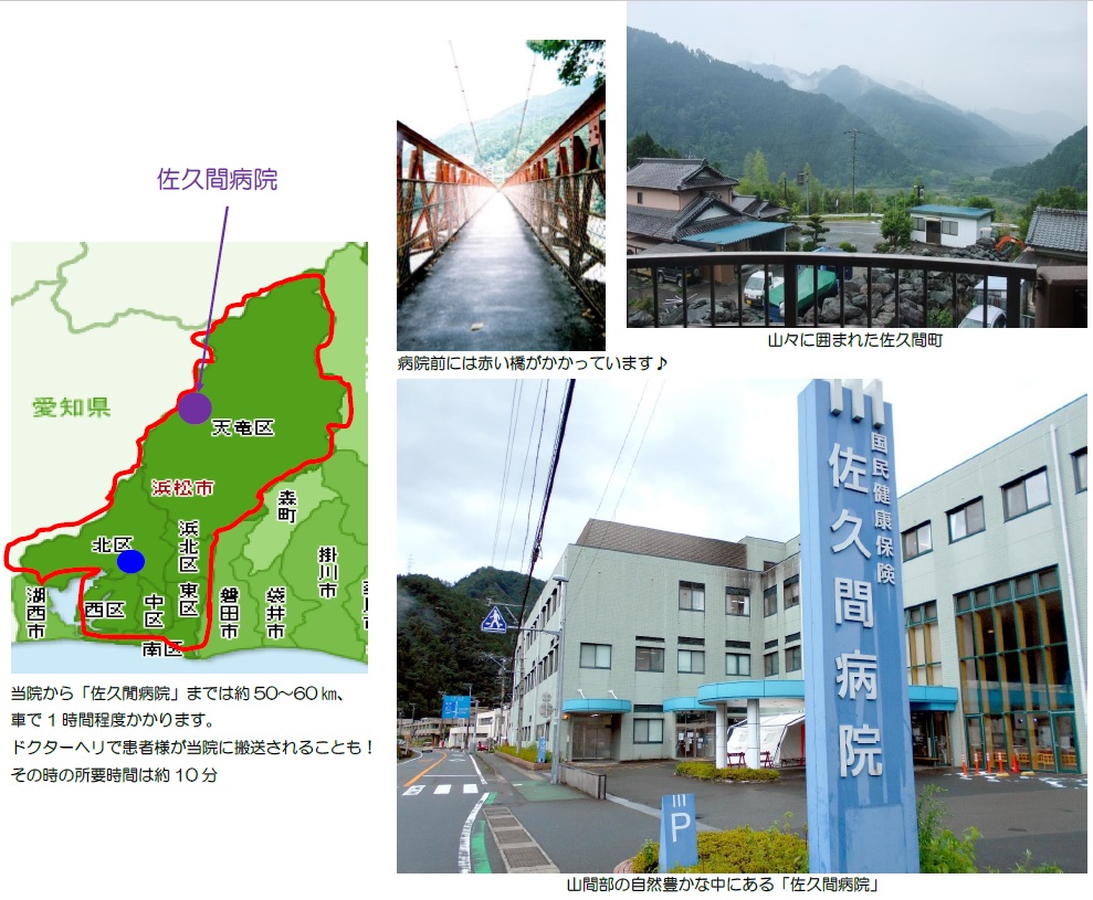 当院での地域医療研修先として、「浜松市国民健康保険 佐久間病院」「医療法人徳洲会 沖永良部徳洲会病院」「聖隷淡路病院」がありますが、その一つの「佐久間病院」(以下、佐久間病院)に地域医療研修に行っていた2年目研修医O先生が9月に戻ってきました!!