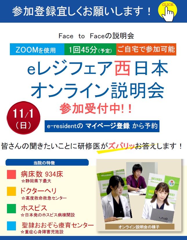コロナ禍で医学生の皆さんとお話する機会が限られるなか、この説明会で当院の研修について沢山お話できることを研修医一同楽しみにしております♪
