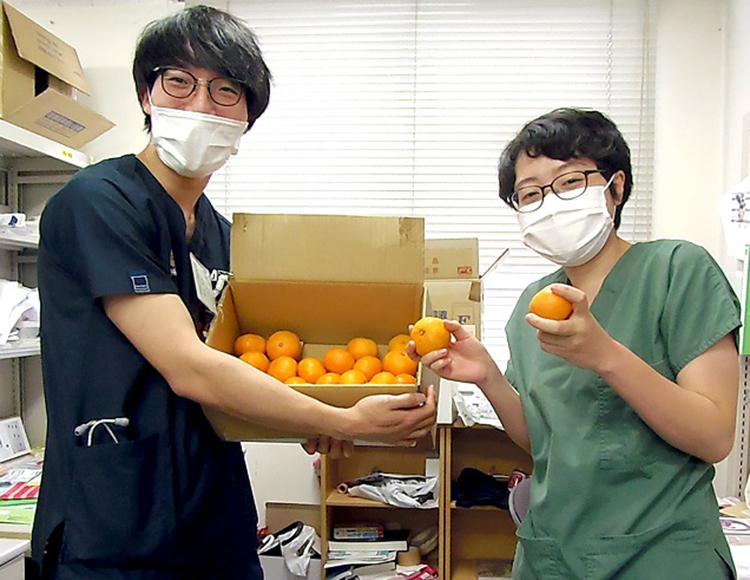 こんにちは。 11月もあと少し・・。 先週の雨があがった後あたりから、急に寒くなってきましたね。 病院の周りのみかん畑のみかんも黄色の花を咲かせたように初冬を彩っています。 ここ浜松では「三ヶ日みかん」が有名です。 静岡県の西部に位置する三ヶ日町は、みかんの生育に適した土地柄で美味しいみかんが沢山生産されています。 静岡県に初めてきた1年目研修医K先生は、三ヶ日みかんの美味しさにはまり、同期や先輩医師に華麗なる「みかん外交」をしています。 「甘くてとっても美味しいでしょう!」 「自分用に1箱と家族や関東の友達にも送ったんですよ!」とにこにこ顔☆ K先生の&ldqu