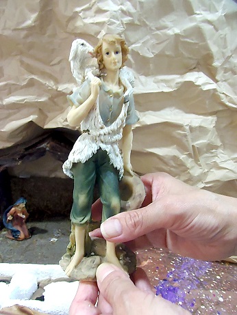岩山作りが終わるとようやくヨセフやマリア、イエス・キリスト、東方の三賢人、羊飼い、天使、羊、ロバなどを飾っていきますが、作業開始した途端、仕事の電話が入り飾り付けは一時中断し、ようやくその日の夕方に完成☆
