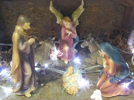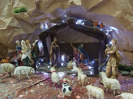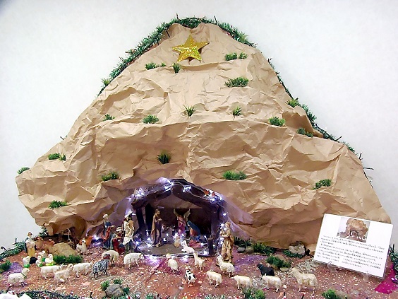 イエス・キリストはじめマリアとヨセフ、羊飼いなどが飾られ、賑やかになりました。