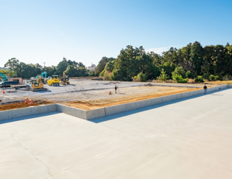 こんにちは。 12月に入り急に気温が下がり冬の様相を呈してきました。 皆さん、いかがお過ごしですか。 今回は、現在建設中の「ドクターヘリ格納庫及びヘリポート」の10月~11月の工事進捗状況をご紹介します。 工事は造成工事の真っ只中。土地の北側には大きな調整池を整備し、西側には擁壁を整備しています。 ヘリコプター格納庫ということもあり、工事を丁寧に進めております。写真の中に映り込んでいる人の大きさから調整池の規模感が伝わります。見た目では大きな変化は見受けられませんが、11月の撮影時には右端の擁壁が出来上がり着実に工事は進んでいます。 格納庫の周りには境界としてルーバーフェン