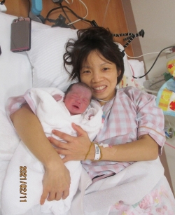 予想より若干小ぶりの女の子でしたが、産声は大きく、おかあさんのおっぱいも上手に吸ってくれました。2人のお姉ちゃん、お兄ちゃんに負けないですくすく育ちそうですね。
