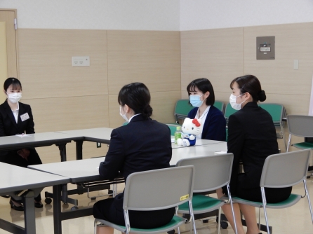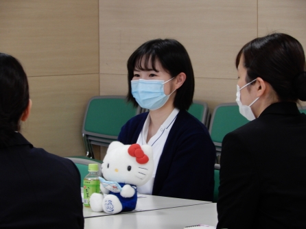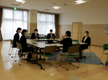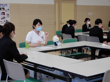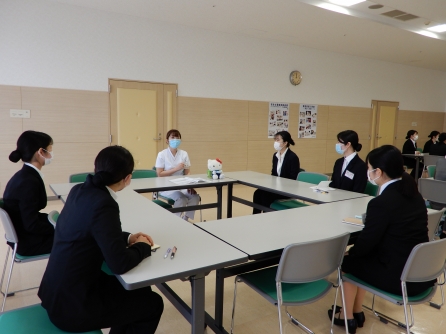 職場見学がない学生さんは先輩との座談会。身近な先輩なので質問も返事も共感しやすいですね。先輩看護師の話を聞いて、仕事にとても前向きに取り組んでいる様子が窺えて嬉しく思いました。