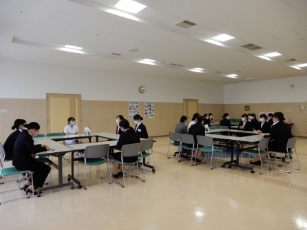 職場見学から戻ってきた学生さんとの座談会、3グループに分かれて行いました。