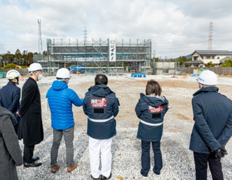 こんにちは。 この間年越しをしたと思っていましたが、もう2月です!時が経つのは早いものです。 皆さん、いかがお過ごしですか。 今回は、「ドクターヘリ格納庫及びヘリポート」の2021年1月の工事進捗状況をご紹介します。昨年の12月末には造成工事が完了し、1月から格納庫の建築が始まっています。 前回見学に来た1月14日は、格納庫の基礎の工事中でした。 基礎の広さから格納庫の大きさを想像したり、ヘリパッドの場所を推測したりと、ワクワクする時間を過ごすことができました。1月29日には、院長、総看護部長、事務長が進捗状況を視察しました。 基礎の工事から2週間しか経っていませんが、全て