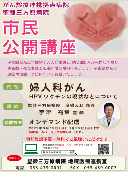 当院産婦人科 部長 宇津 裕章 医師による、オンライン市民公開講座をホームページ内で配信中です♪